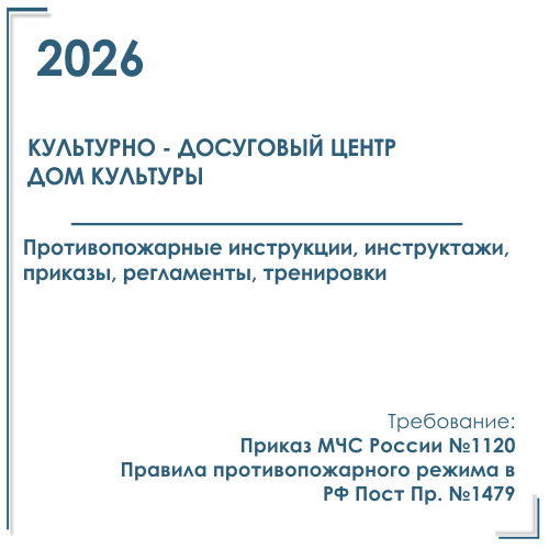 Готовый комплект программ инструктажей, инструкций, приказов по пожарной безопасности для культурно-досугового центра, дома культуры (2026 г.)