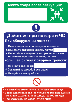 - Предусмотрены поля для указания актуальных номеров телефонов пожарной охраны и места сбора конкретной гостиницы;